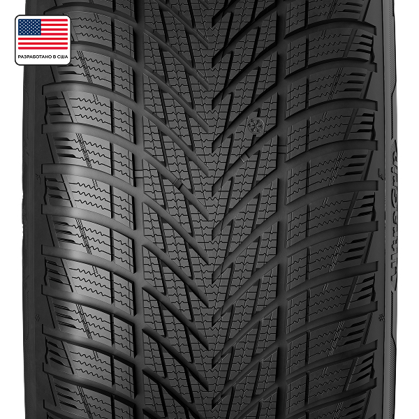 Протекторный рисунок представляет собой современную вариацию классического V-Tread, представленного еще в 80-х годах прошлого столетия. Его отличает увеличенное количество V-образных кромок, благодаря чему повышается тяга и устойчивость на заснеженном покрытии. Расположенное ровно посередине сплошное продольное ребро добавляет к этим свойствам точность управления и сниженное сопротивление качению. Необходимо отметить применение в протекторном рисунке нескольких важных технологических решений. Прежде всего, это канавки Snow Protect, расположенные по краям беговой части. Особый профиль стенок, позволяет им глубже проникать снег, обеспечивая тем самым устойчивое сцепление. В рисунке используется технология Wet Grip+. Расположение и многочисленные пересечения дренажных канавок повышают интенсивность отвода из-под шины воды и ее смеси со снегом и дорожной грязью, благодаря чему улучшаются тягово-сцепные свойства, достигается более комфортное управление при наиболее неблагоприятных погодных условиях.