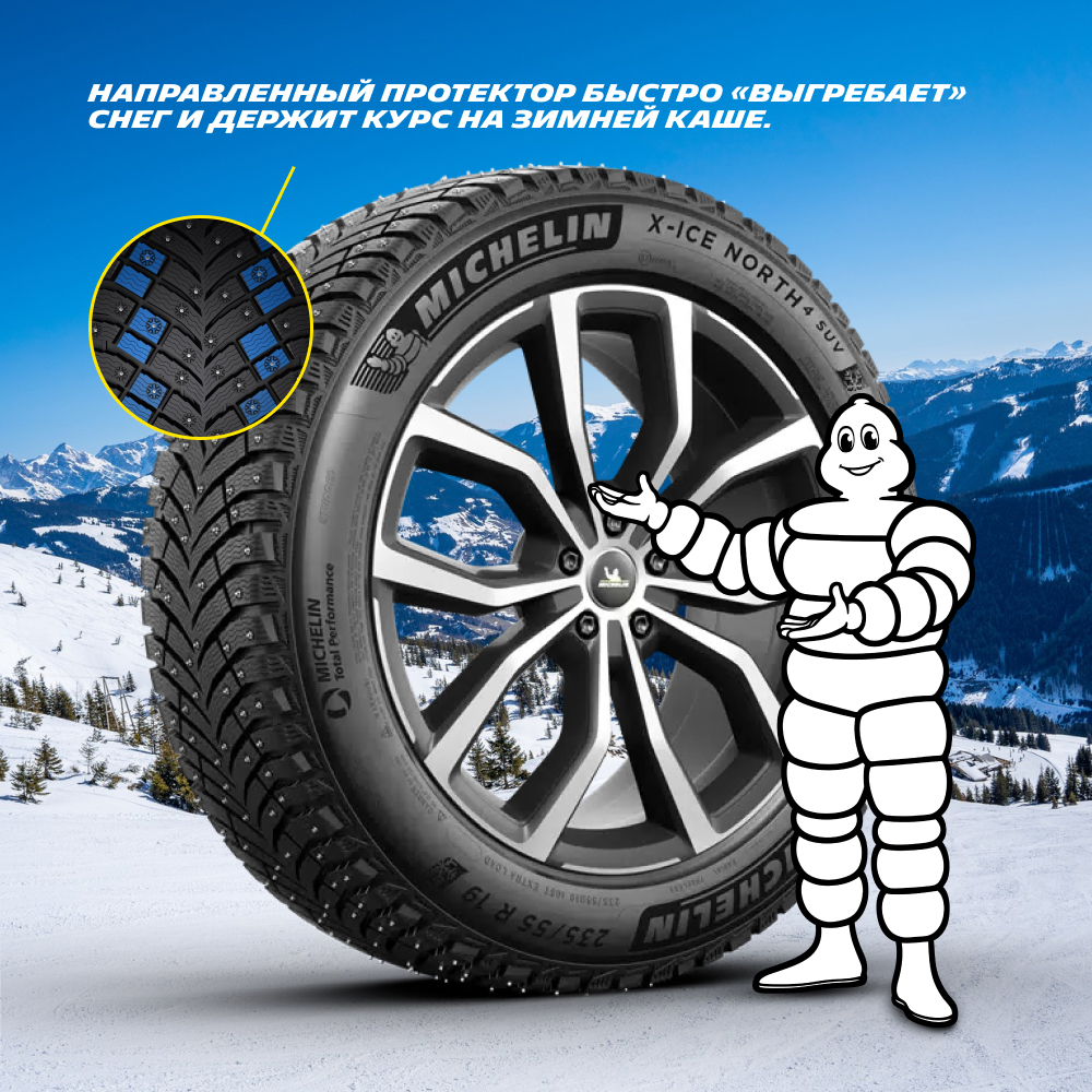 Разработанная во Франции, X-ICE North 4 SUV - это шипованная зимняя шина, специально созданная для кроссоверов и внедорожников. Максимальное сцепление, надёжность и управляемость в самых суровых условиях — от голого льда до заснеженных трасс.