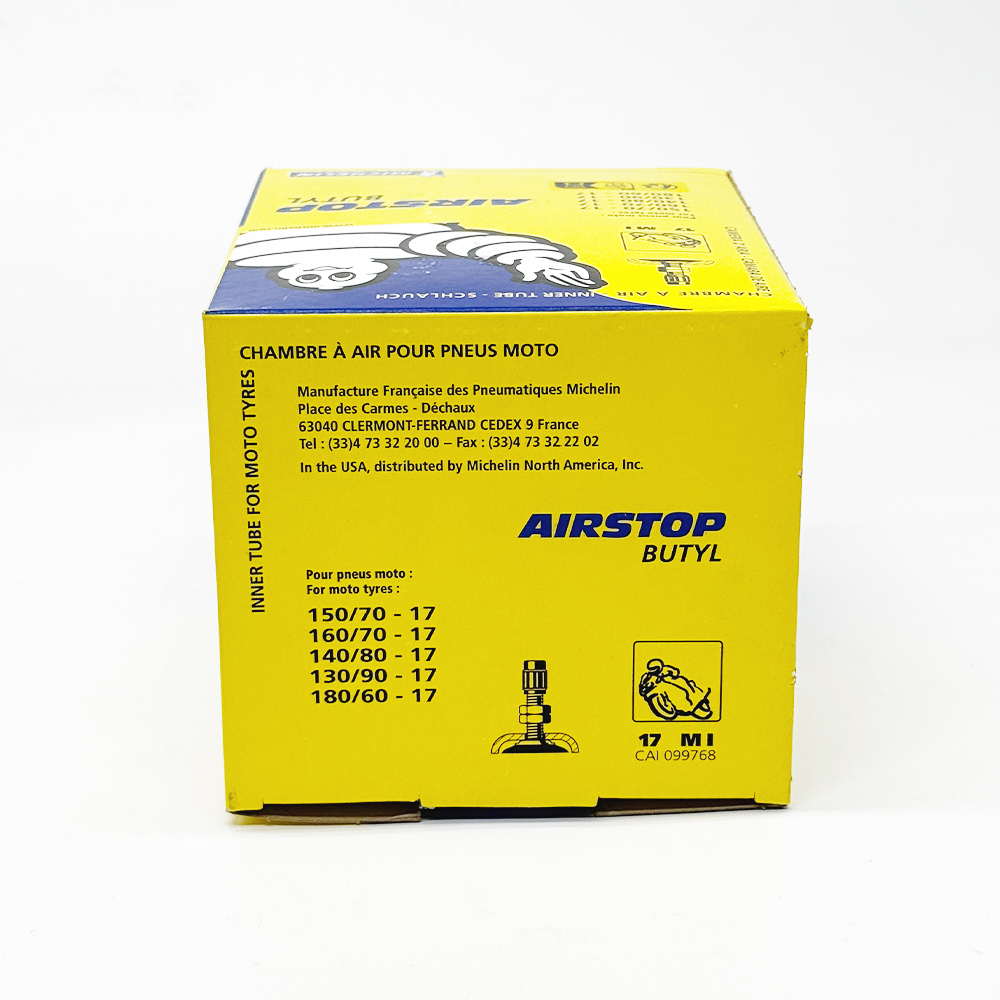 Камера Michelin CH.17MI Airstop - это выбор тех, кто понимает: надёжность начинается изнутри. Бутиловый материал премиального качества и усиленная конструкция HD обеспечивают стабильное давление и спокойствие на любом маршруте - будь то городской трафик или затяжной автобан.