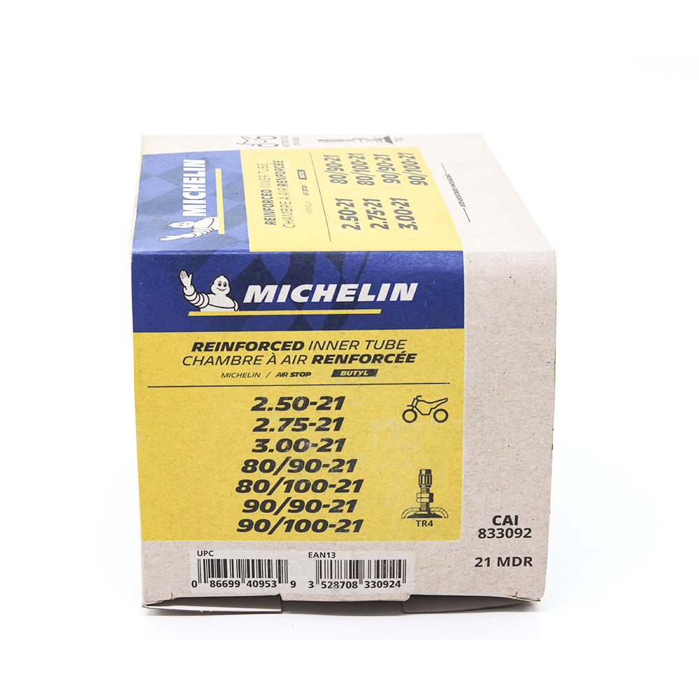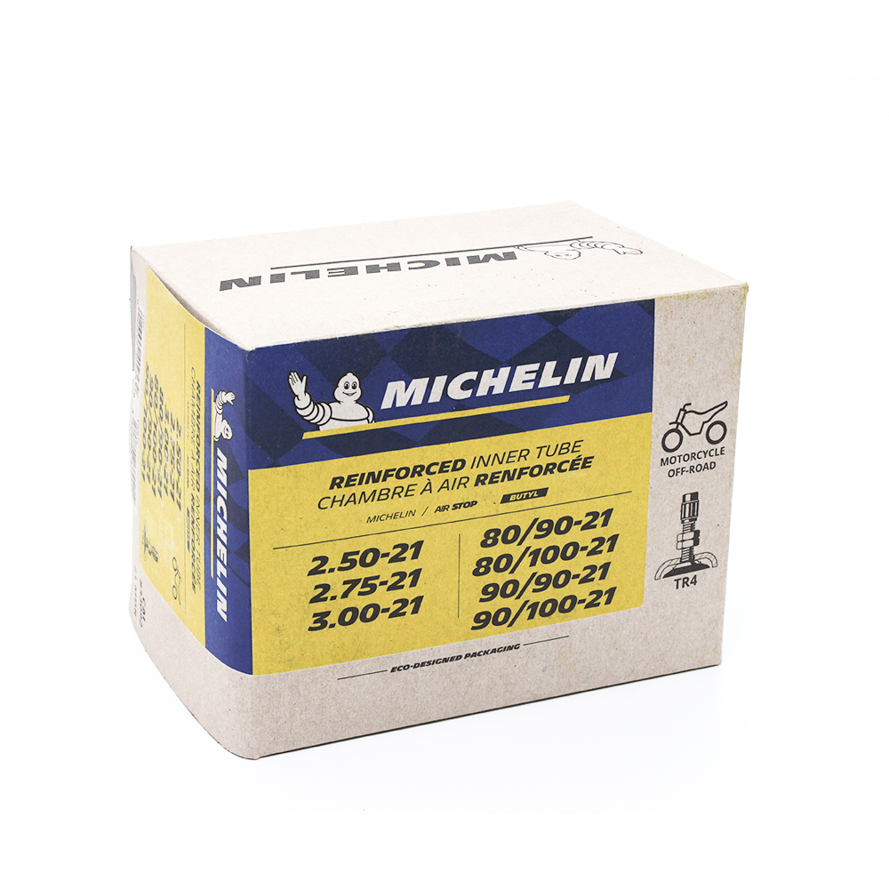 Мотокамера MICHELIN CH.21MDR с вентилем типа TR4 разработана специально для внедорожных и эндуро-колёс размером 21″. Она совместима с шинами следующих типоразмеров:
