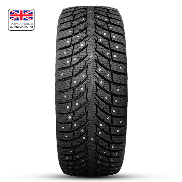 Эта шина создана для тех, кто отдает приоритет безопасности перед всем остальным - направленный рисунок, плотная заводская ошиповка - это гибрид фрикционной и шипованной шины для любых зимних условий.