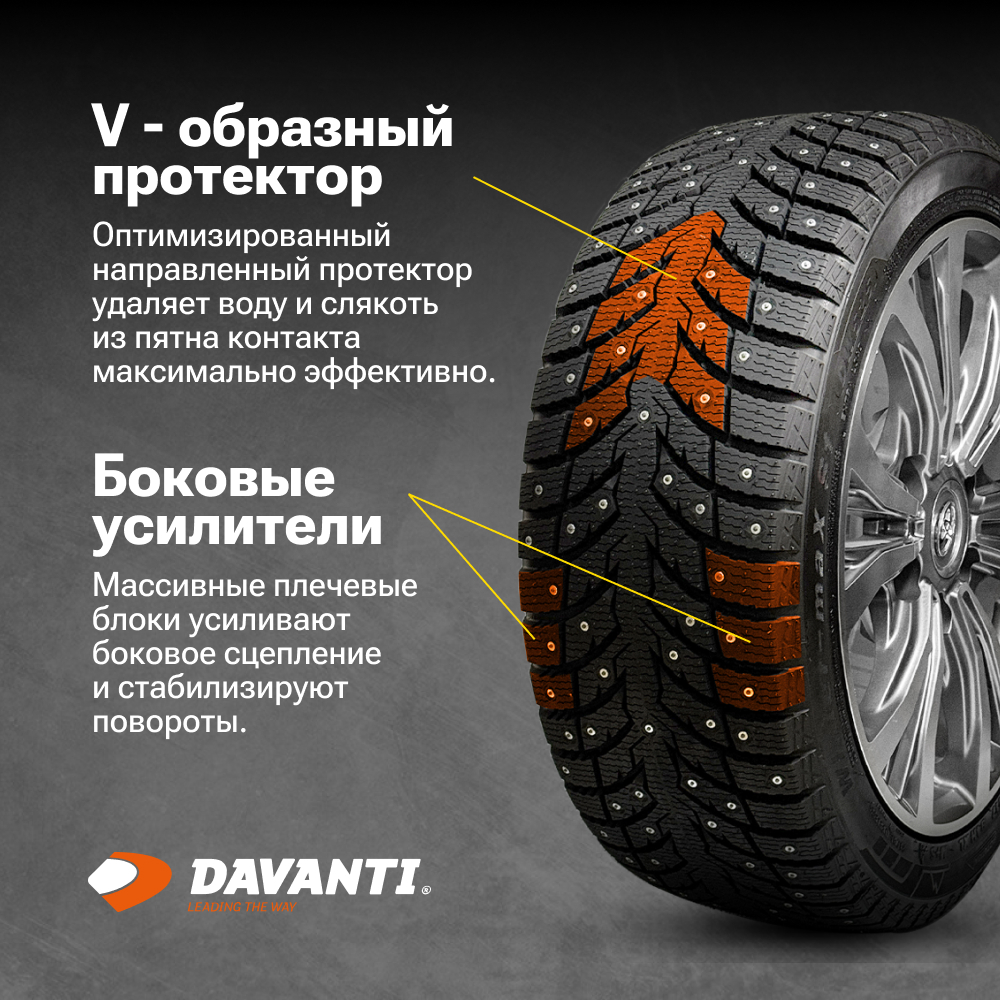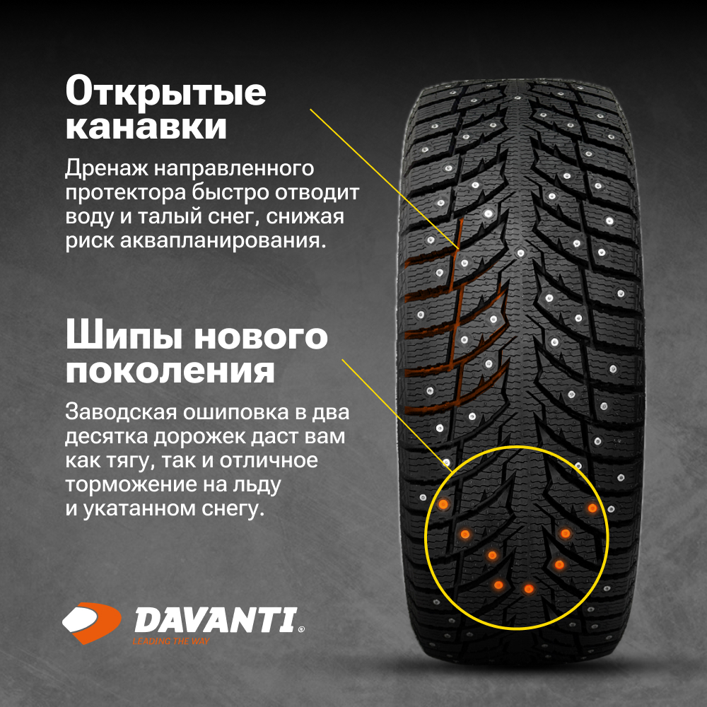 Заводская ошиповка в два десятка дорожек даст вам как тягу, так и отличное торможение на льду и укатанном снегу!
