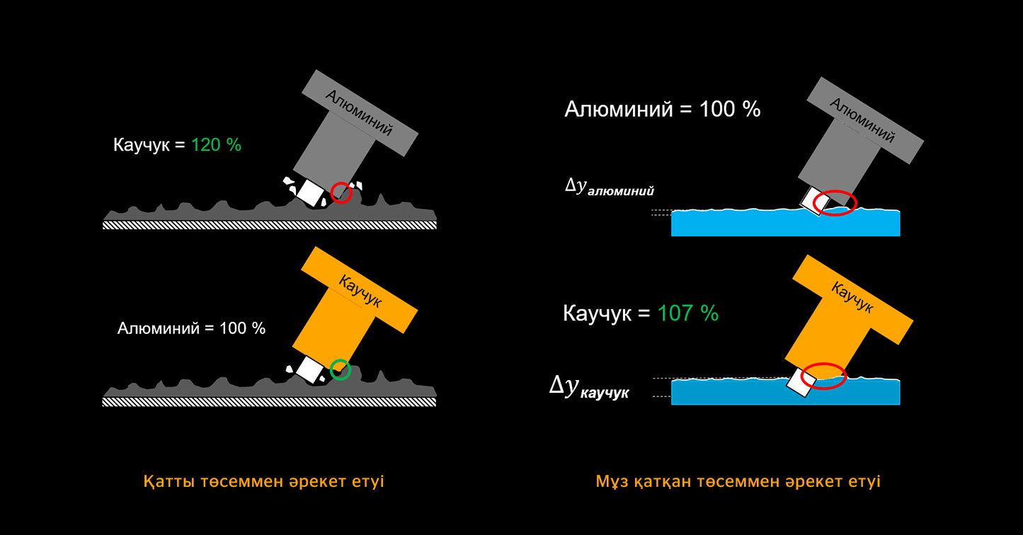 Алюминий қорытпасынан жасалған бұдыр мен негізі резеңке қоспасынан жасалған бұдырдың негізгі айырмашылығы – жол төсемімен әрекеттесуі.