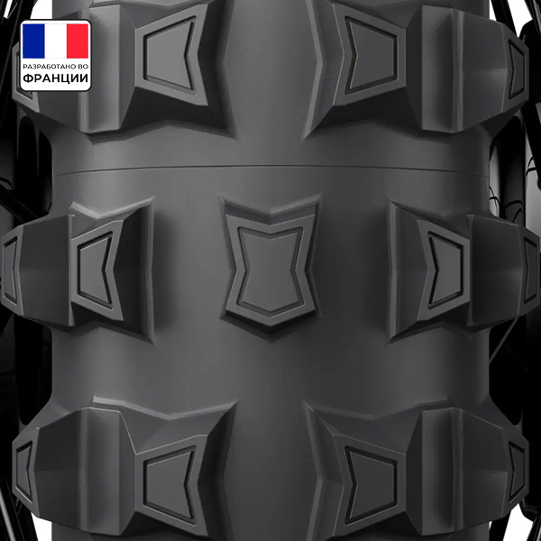 Особый рисунок протектора представлен массивными четырехугольными блоками, которые расположены поперечными рядами. Расположение перпендикулярно движению раскрывает потенциал двигателя на полную силу.
